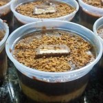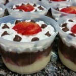 Dica: Estão me perguntando sobre o tamanho da forma, então para quem tem dúvidas sobre isso lá vai! A forma (tabuleiro), pode ser do tamanho que você quiser, da quantidade que você desejar fazer. Você precisa cortar os bolos com um cortador ou com uma tampa ou com a borda de um copo, algo que seja do tamanho do pote que escolher. Dá até para aproveitar os farelos(sem casca é claro) para fazer as camadas. Então não precisa fazer os bolos do tamanho dos potes, entenderam? 🙂