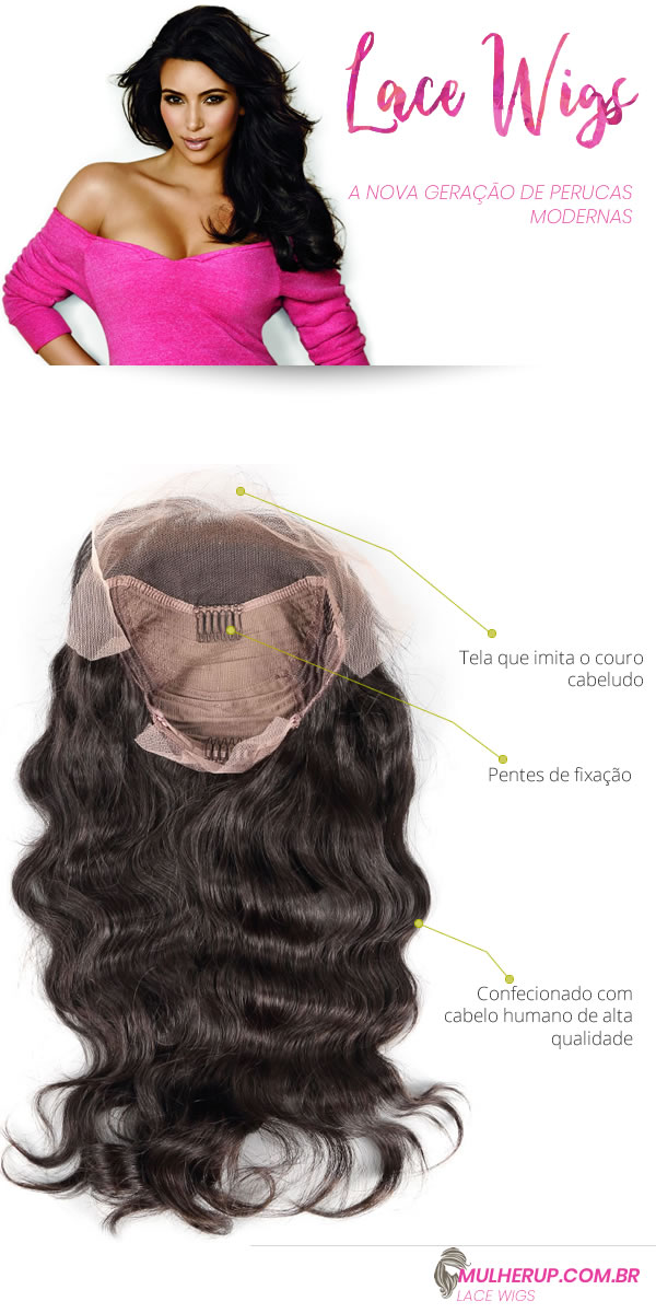 Lace wigs é a denominação da nova geração de perucas modernas que entrou no gosto das famosas. A naturalidade e beleza que as lace wigs proporcionam deixou para trás o visual artificial das perucas antigas.
