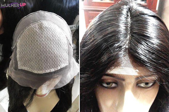 Sim, é possível! “As laces que comercializamos possuem pentes no interior onde é possível fixar na cabeça usando uma faixa por baixo ou touca, ou com elástico, como já disse anteriormente. Dessa maneira você pode tirar e variar o uso das suas laces e sempre ficar com um visual diferente. É uma libertação!”, explica Cida.Detalhes de uma lace front wig por dentro.