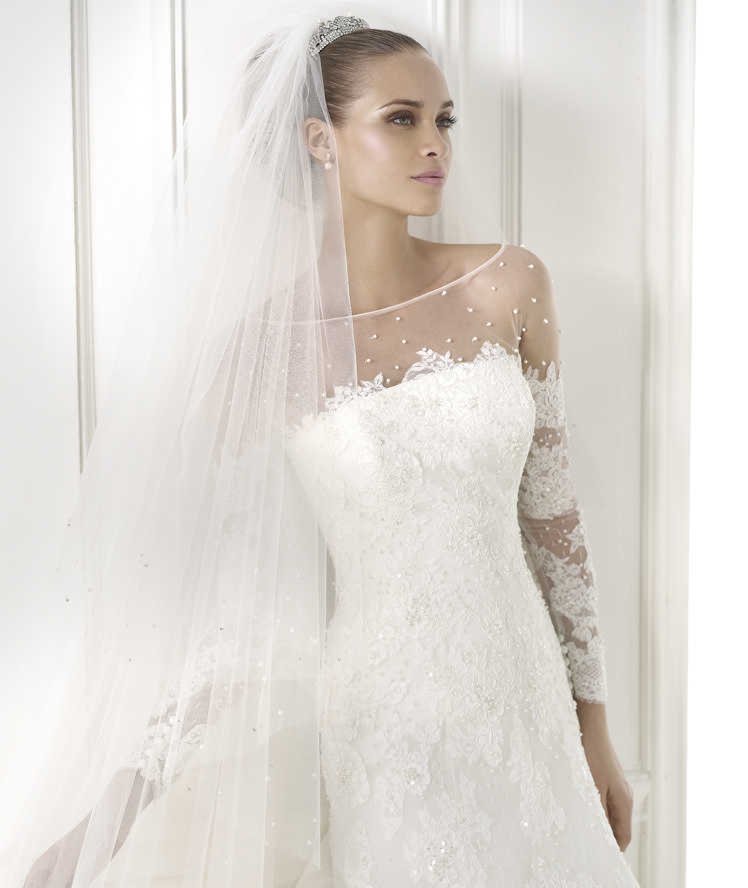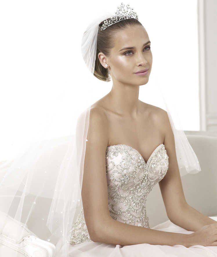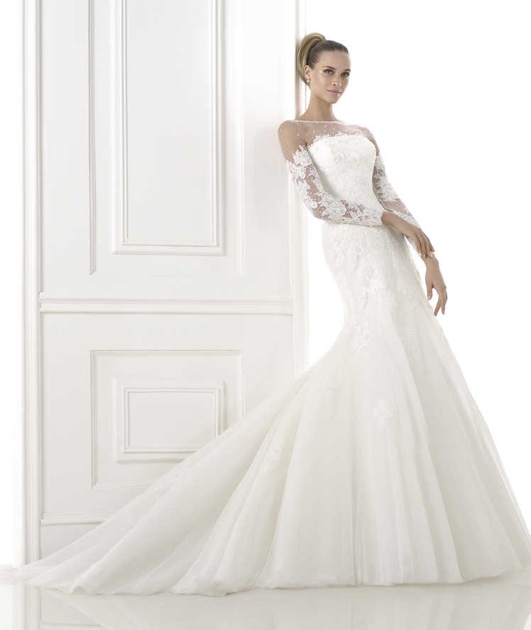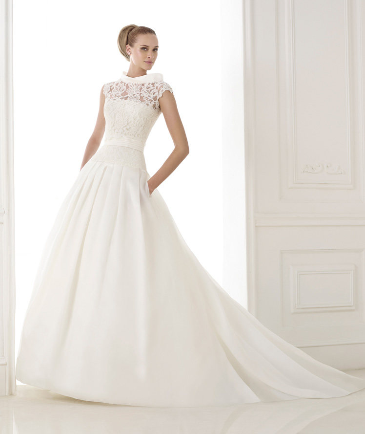Quanto a coleção Pronovias, os tecidos vão do tule para velar os decotes até as mais puras rendas, sedas e crepes. Glamour e luxo é o que espera a noiva que escolher um vestido de noiva da marca. Veja as fotos:
