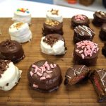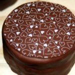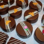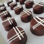 Para decorar uma sugestão é derreter o chocolate ao leite e fazer a decoração por cima do chocolate preto. Aqueles risquinhos, desenhos que você pode fazer com o saco de confeiteiro ou improvisando com um saquinho com furinho na ponta.