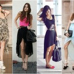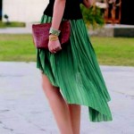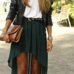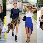 Modelagens assimétricas são modernas e elegantes, quando usadas com roupas neutras. As saias mullet, mais curtas na frente, são um belo exemplo e estão super em alta! A melhor maneira de aderir a essa mania é escolher peças básicas para a parte de cima do look com cortes simétricos.