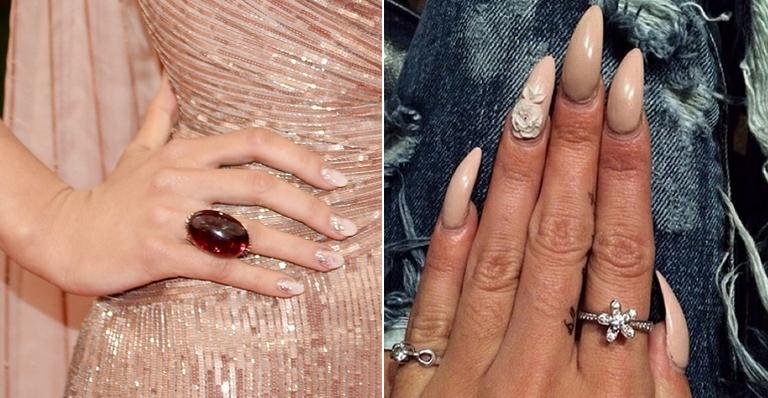 Para o Ano Novo, muitas preferem manter a cor discreta e podem apostar no nude, no clarinho, no rosa tradicional. Mas essas mesmas cores ficam lindas com um toque de desenho, seja de flor, folhas, adesivos ou de strass.